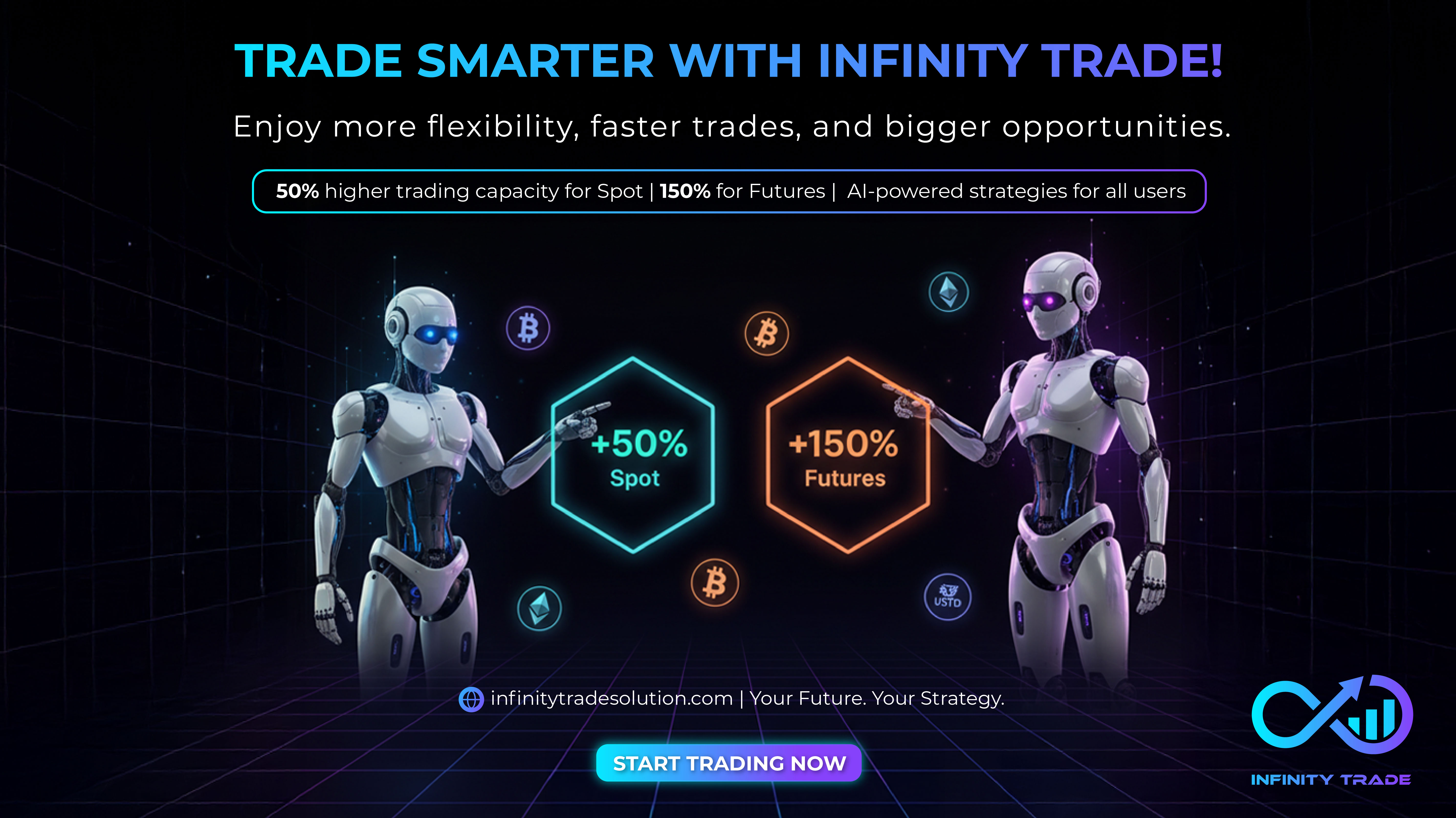 Unlock Smarter Trading with Infinity Trade! Experience AI-powered precision with up to 50% higher capacity for Spot and 150% for Futures. Trade faster, smarter, and stronger — all in one platform.